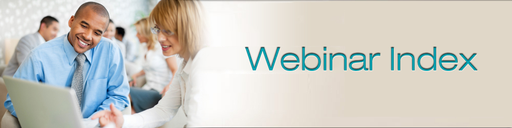 This page lists webinars that have been broadcast within the last year. These webinars are listed by topic in chronological order starting from the most current webinar. To access older broadcasts please click here